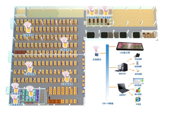该系统是根据《药品经营质量管理规范》(GSP法规),针对的医药商品流通环节中环境温湿度监控管理系统。主要用于对药品仓库的温湿度的远程监测报警。系统提供对仓储环境温湿度的严格监测和管理,并将数据传输到PC机上进行数据存储与分析,并输出打印曲线,在设备异常情况下还以多种形式的报警通知相应人员,使仓储环境监控达到无人或少人值守,为仓储的管理、使用和安全运营提供有力的保证。